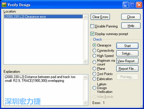 PCB設計布線規則,或是是否全部完成布線,我們必須另外使用「驗證設計 (Verify Design)」功能來檢查是否有錯或已完成,作法如下: